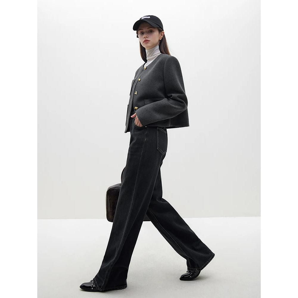 Begrüßen Sie die Jahreszeit mit unseren Sets für Bürodamen im neuen koreanischen Winterstil mit kurzen Rundhalsmänteln und geraden Röcken. Die gerade Silhouette und die wadenlange Länge strahlen Eleganz aus und machen sie zur idealen Wahl für das moderne Büroumfeld.
