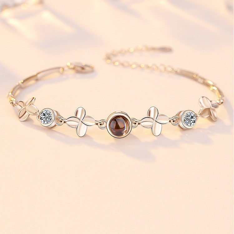 Farbe: sl011A vierblättriges Kleeblatt-Projektionsarmband aus Weißgold, sl011A vierblättriges Kleeblatt-Projektionsarmband aus Roségold