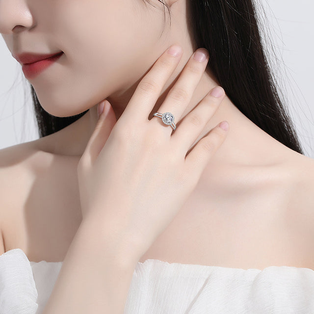Sechs-Krappen-Diamantring aus Moissanit mit 1 Karat