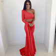 New One-shoulder Sleeve Exposed Navel Formal Dress - Red / S is backordered and will ship as soon as it is back in stock.