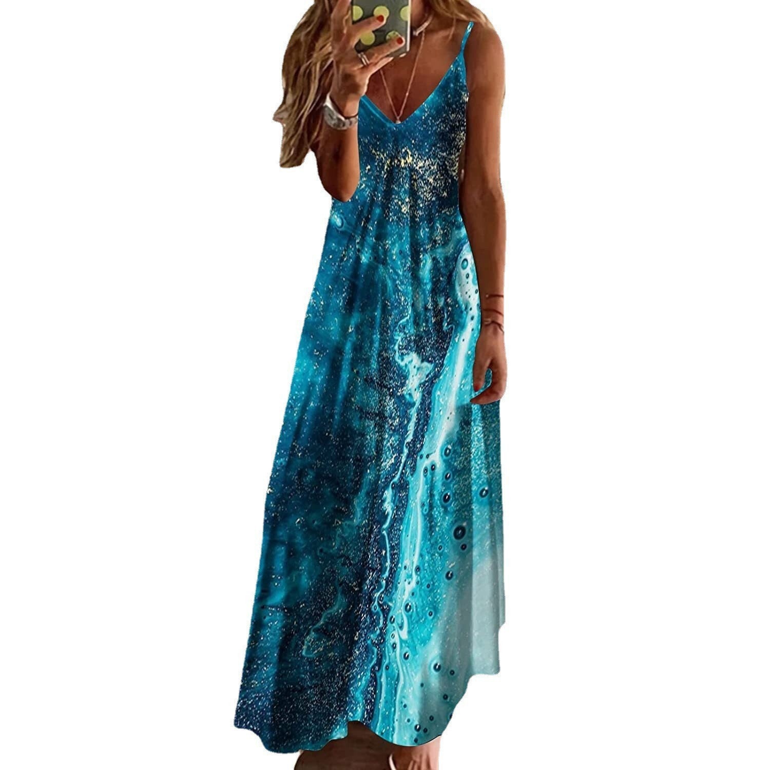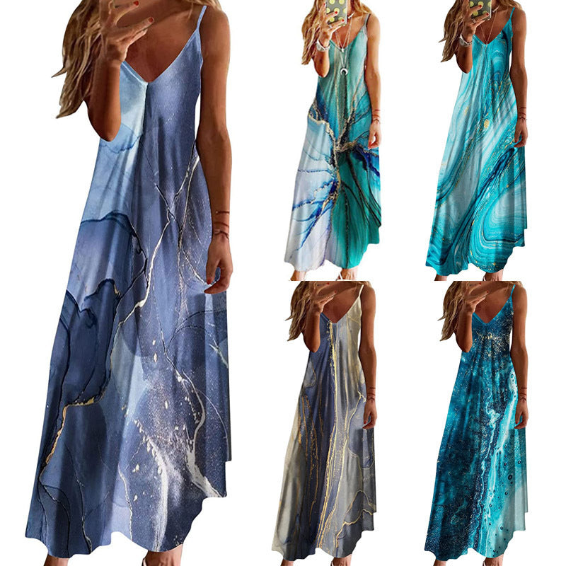 Women's A- Version Positioning Printed Dress Loose Large Size Strap Dress