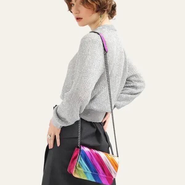 Our Colorful Striped Flap Handbag with Metal Chain is not just a bag; it's a statement of fashion and functionality. It's specially designed for the modern woman who values style, quality, and versatility. The striking design, combined with practical features, makes this handbag a must-have in your collection. It’s perfect for those who want to make a statement while keeping their essentials neatly organized.