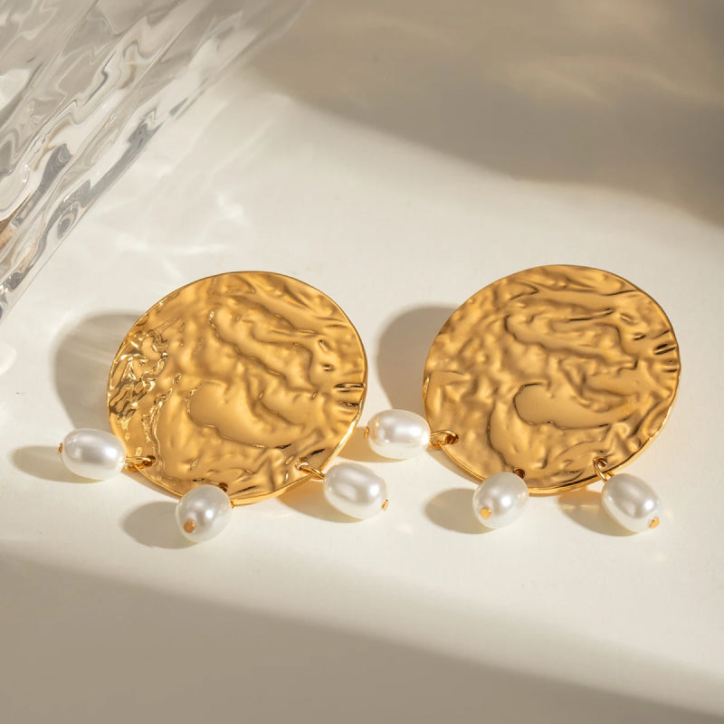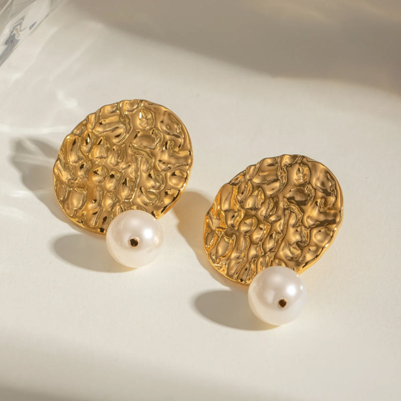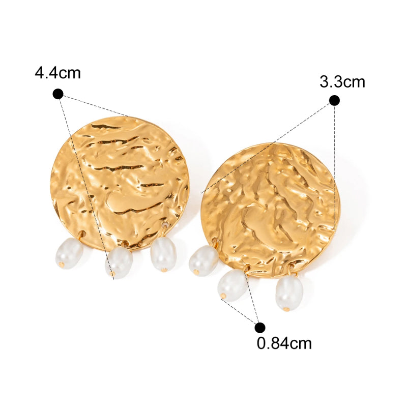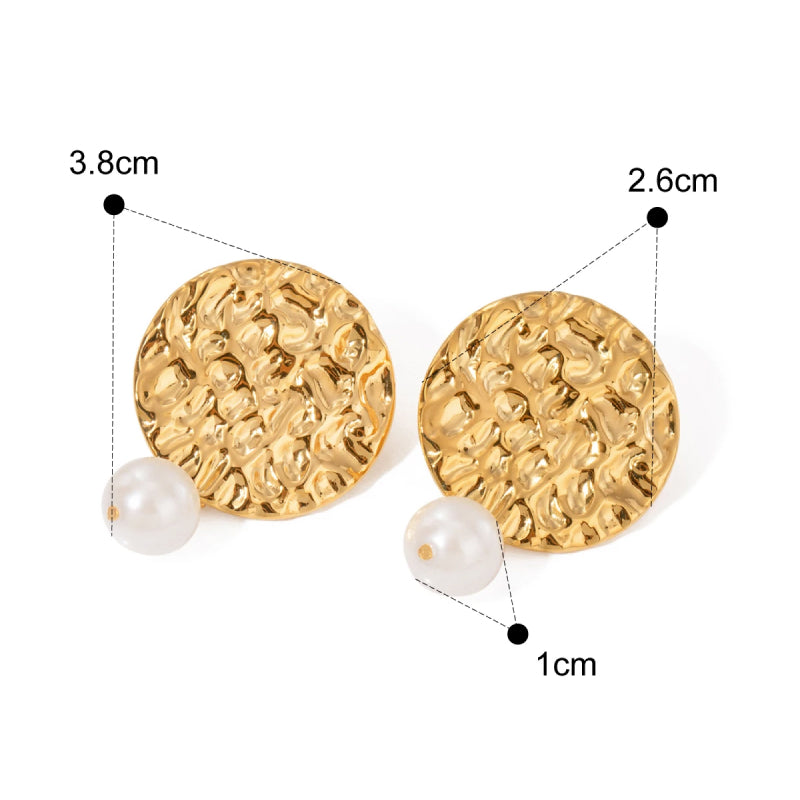 Our Retro 18K Gold Plated Stainless Steel Round Hammered Pearl Earrings are more than just accessories—they're a statement of style and sophistication. Combining the timeless appeal of hammered gold with the classic beauty of pearls, these earrings offer a unique and fashionable touch to any look. Whether you're attending a special event or simply want to add a touch of elegance to your everyday wear, these earrings are the perfect choice. Don’t wait to enhance your jewelry collection with these stunning earrings. Order now and experience the blend of retro charm and modern elegance that will make you shine!