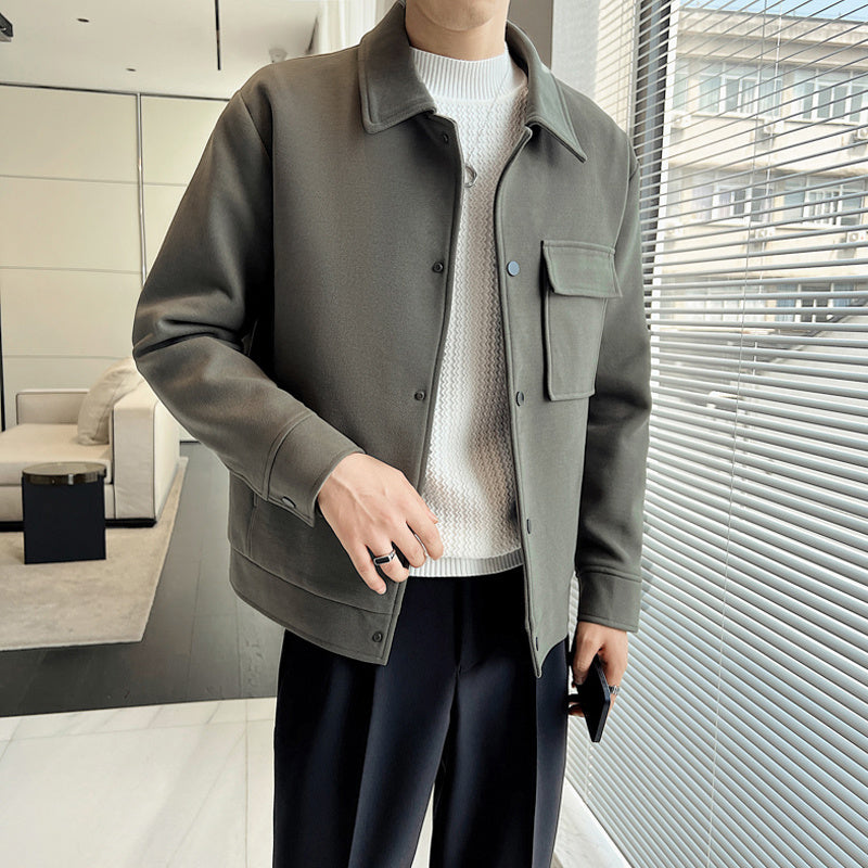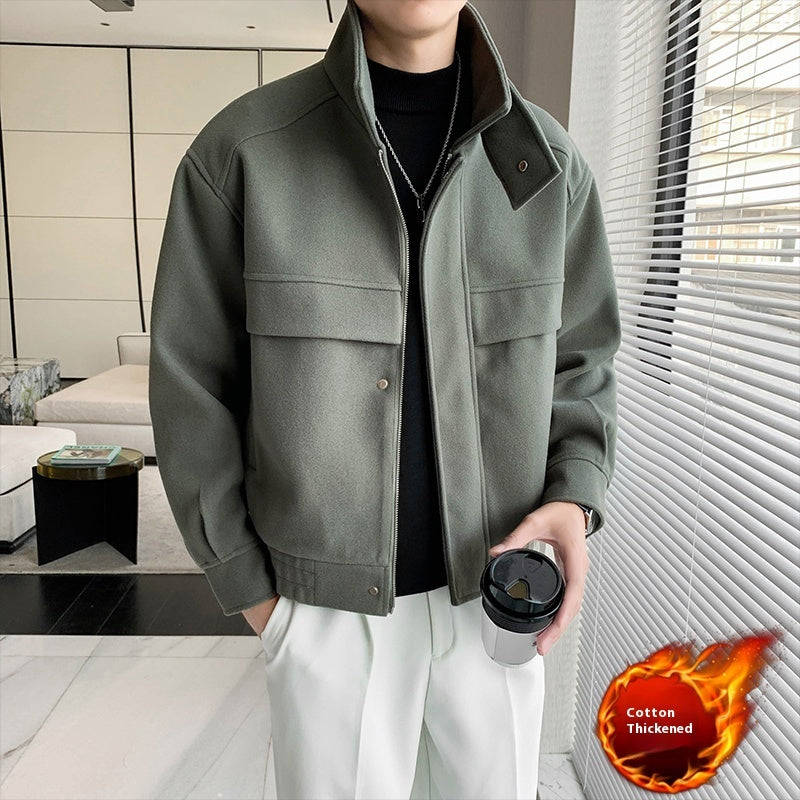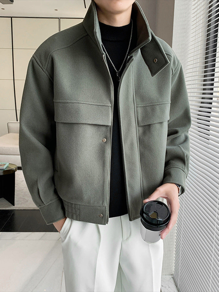 Premium Short Woolen Overcoat Coat - Green W7030 Common Style / M is backordered and will ship as soon as it is back in stock.