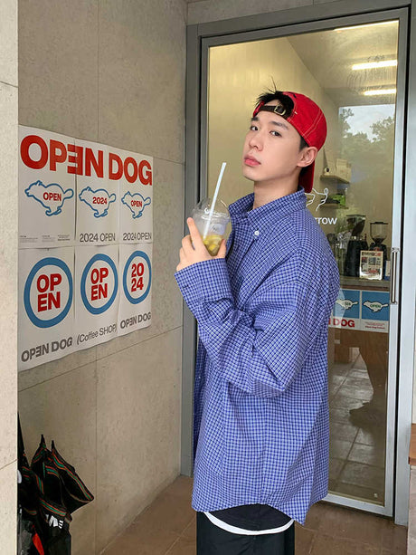 Regular price CHF 81.00Unit price /UnavailableAmerican Retro Blue Plaid Long Sleeve...