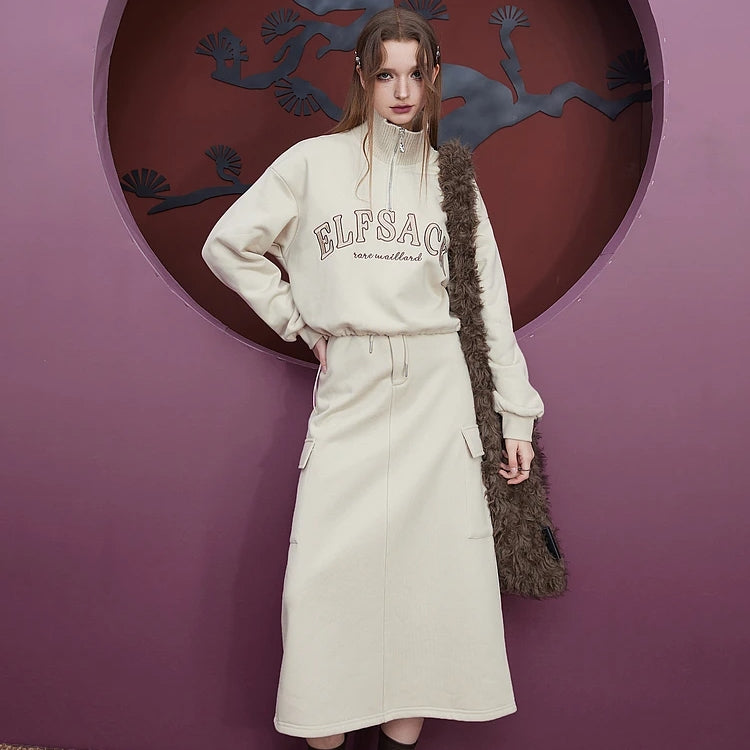 The Autumn Fleece Pullover Skirt Sports Suit stands out with its unique combination of comfort, style, and practicality. The slight stretch in the fabric allows for easy movement, while the loose fit ensures you stay comfortable throughout the day. The turtleneck collar adds a touch of sophistication, making this outfit suitable for both casual and semi-formal occasions.