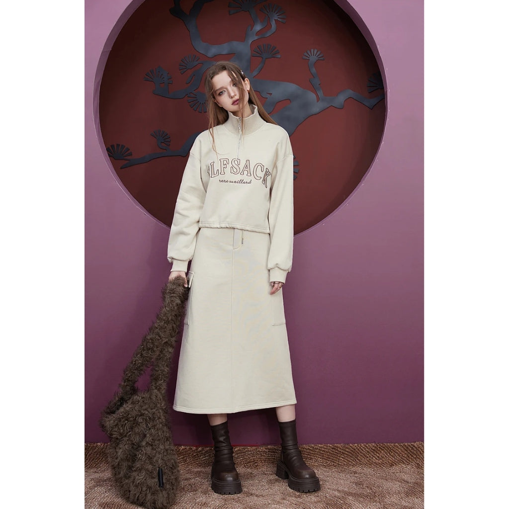 This versatile sports suit is ideal for various autumn activities, from casual outings to lounging at home. Its cozy fleece material makes it perfect for brisk morning walks, running errands, or enjoying a relaxed day with friends. The pullover and skirt combo ensures you look put-together without sacrificing comfort.