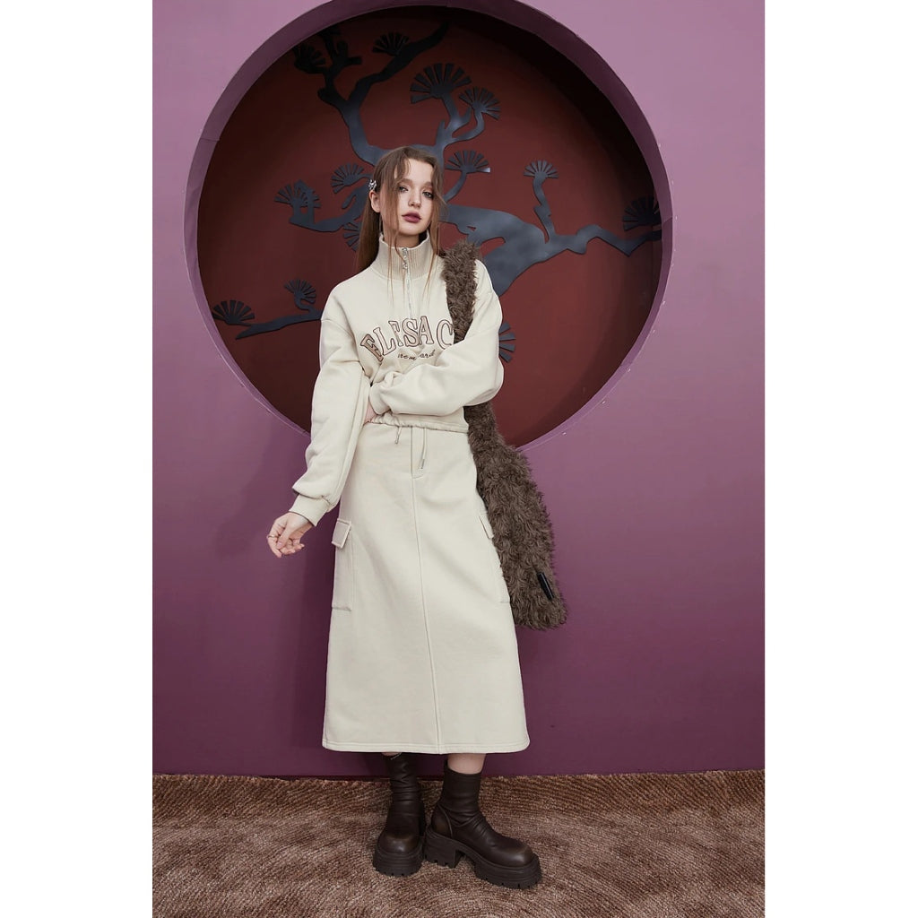 Autumn Fleece Pullover Skirt Sports Suit for Women