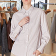 The Combed Cotton Long Sleeve Striped Shirt stands out for its meticulous craftsmanship and attention to detail. The slight stretch in the fabric ensures a comfortable fit, while the natural fiber composition guarantees durability and softness. This shirt embodies the latest trends in women's fashion, making it a stylish and contemporary piece.