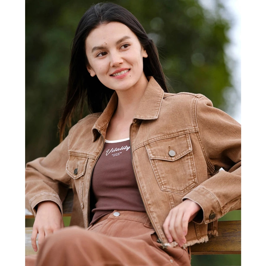 This denim jacket is all about the details. The full-length sleeves and regular sleeve style provide a classic look, while the turn-down collar adds a touch of sophistication. The short length, ranging from 4 to 16 inches, is perfect for a trendy, cropped appearance. The distressed raw edges give it a unique, rugged feel, making it ideal for street style.