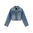 Elevate your style with our 2024 short denim jacket, designed to make you look both slimming and taller. This cool and rustic style distressed jacket is perfect for adding a touch of edgy charm to your spring and summer wardrobe. Crafted with a blend of polyester and cotton, it ensures comfort and durability while maintaining a fashionable look.