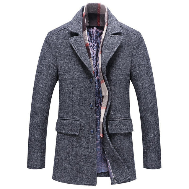 Fall Winter Men's Woolen Coat Fashion Polo Collar Cotton Scarf