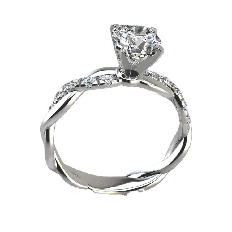 Mujing Jewelry S925 Silver Twisted Round Engagement Ring