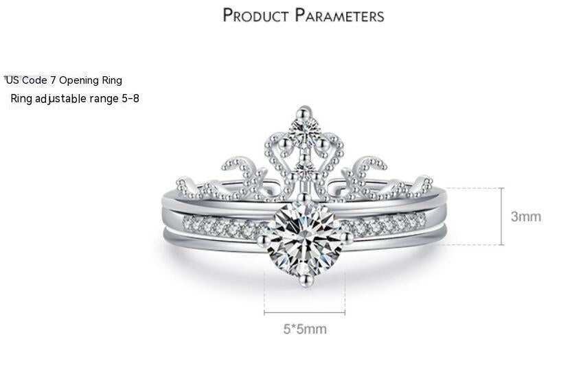 S925 Sterling Silver Light Luxury Minority Crown Ring