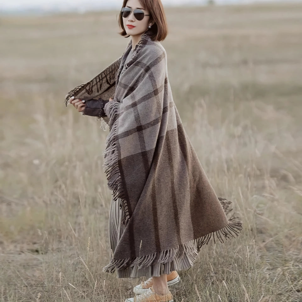 Experience the perfect blend of warmth, style, and versatility with our Luxury Wool Plaid Scarf Shawl in Coffee Beige. Crafted from pure wool, this large square scarf offers a soft and cozy embrace, ideal for those chilly winter days or breezy spring evenings. The timeless coffee beige plaid pattern adds a touch of elegance to any outfit, making it a must-have accessory for your wardrobe.