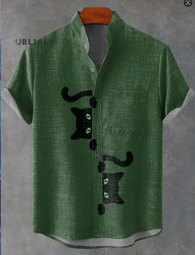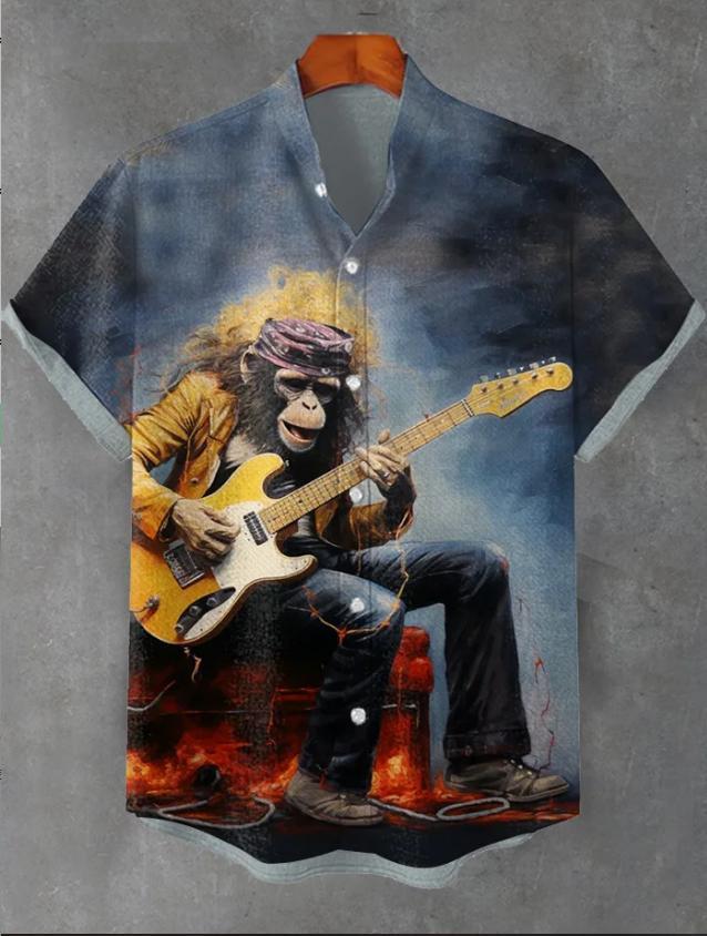 Abstract Pattern 3D Digital Printing Loose Trendy Short Sleeve Stand Collar Cardigan Shirt