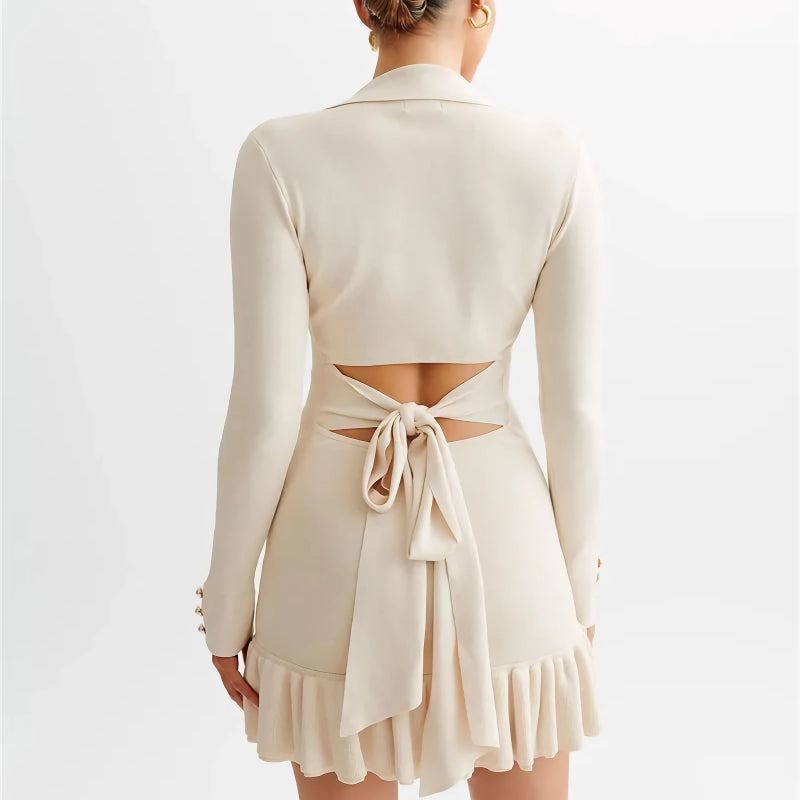 Elegant Long Sleeve Ruffled Knit Mini Dress