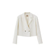 Short Blazer with Turn Lapel Collar and Metal Buckle