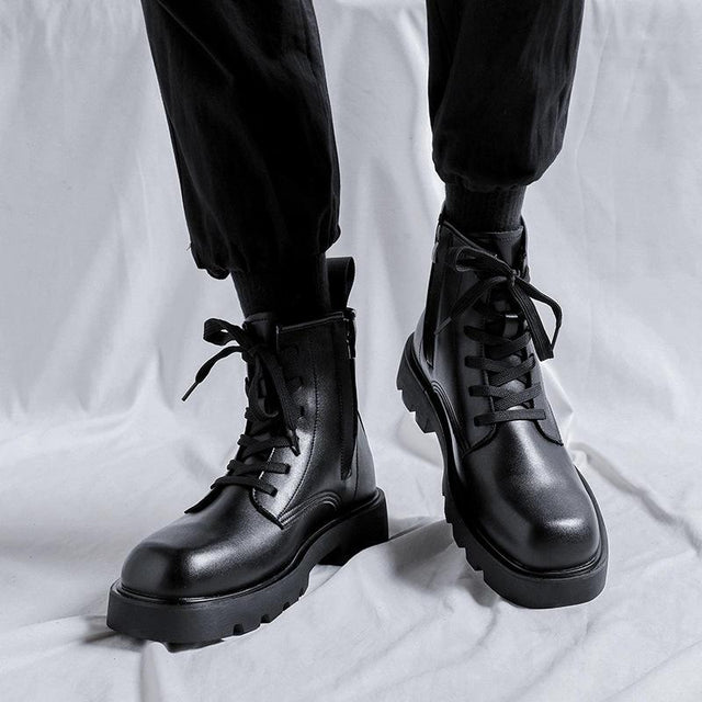 Experience the perfect blend of style and comfort with these Korean Platform Black Leather Ankle Boots. Crafted for the modern man who values both fashion and function, these boots are a must-have addition to your wardrobe. Designed for outdoor work and casual outings, they are versatile enough to be worn in both autumn and spring. The vintage-inspired design adds a touch of timeless elegance, while the contemporary features ensure you stay ahead in the fashion game.Exceptional Features for the Modern Man