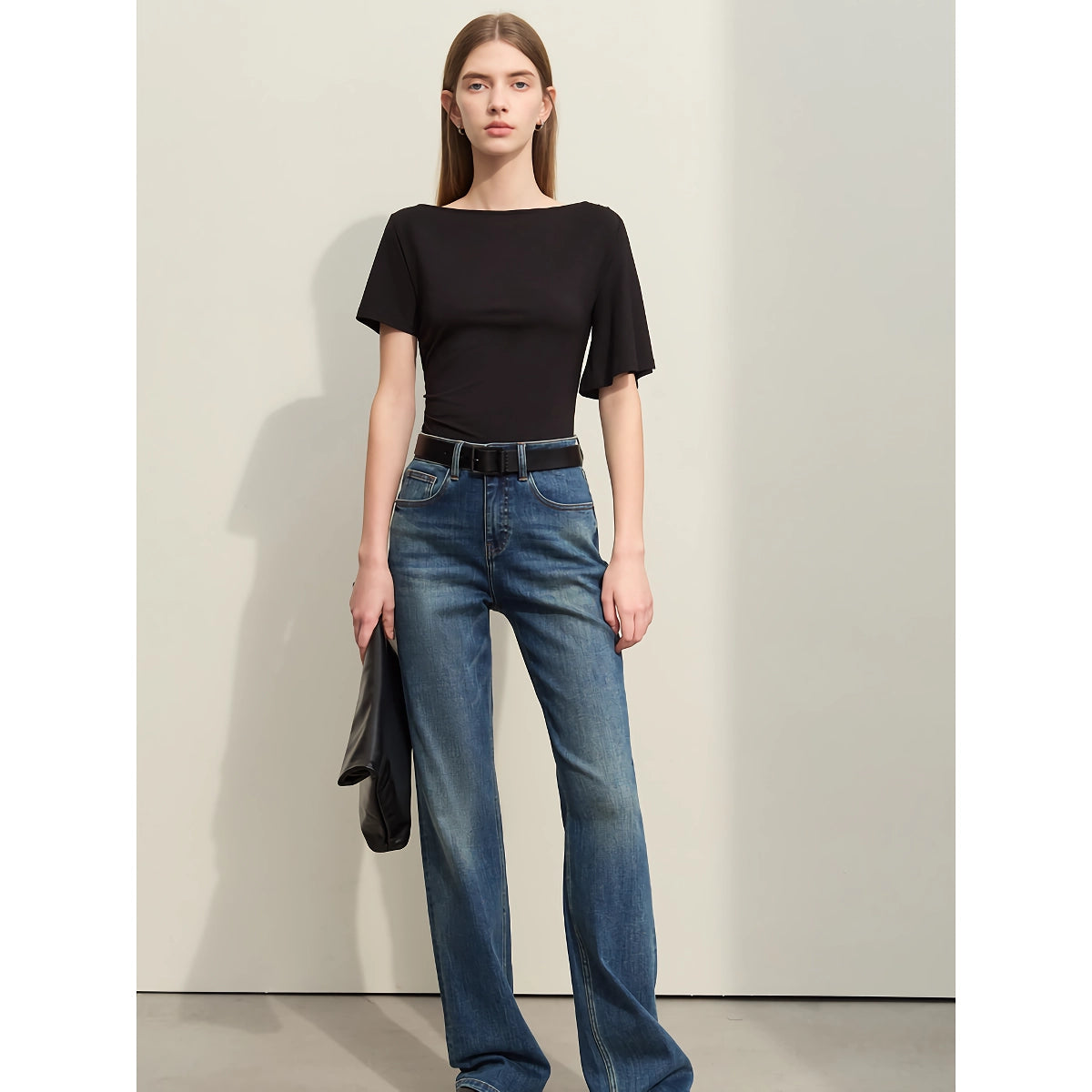 Embrace Elegance with Our Minimalist Asymmetric Slash Neck Women's T-Shirt