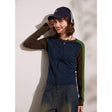 Spring Long Sleeve Casual Round Neck Contrast Color Pullover Top - XL / Dark Blue is backordered and will ship as soon as it is back in stock.