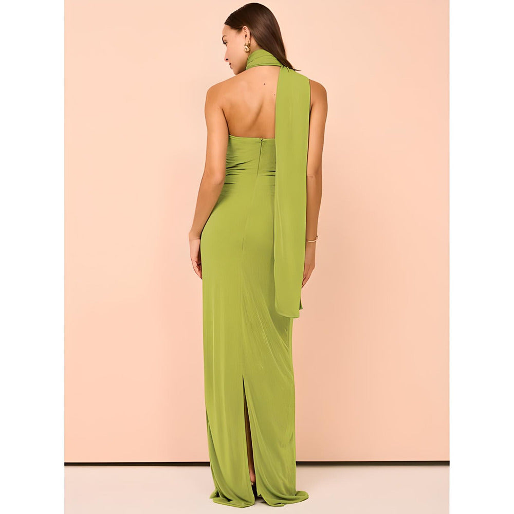 Elegant Halter Backless Ankle-Length Bodycon Dress