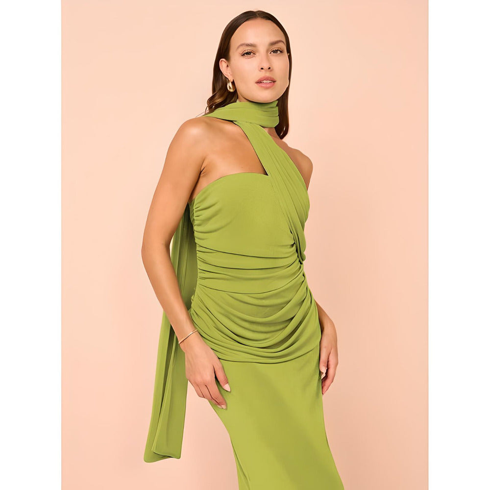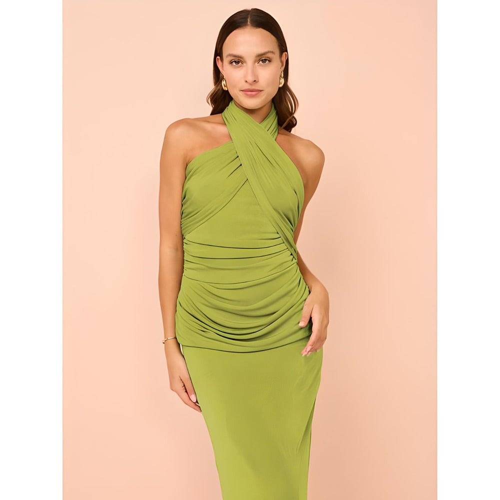 Step into the spotlight with our Elegant Halter Backless Ankle-Length Bodycon Dress, designed exclusively for women who wish to blend sophistication with a touch of allure. Tailored to accentuate your silhouette, this dress is your ideal companion for any upscale gathering or vibrant party scene. Whether you're attending a chic cocktail party, a wedding, or an evening gala, this dress ensures you look stunningly unforgettable.