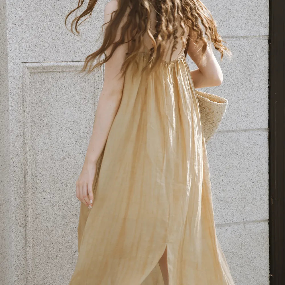 Unlike other dresses, our V-Neck Linen Sundress combines style with sustainability. Made from eco-friendly materials and crafted with care, it not only looks good but also feels good to wear. Plus, its classic silhouette and minimalist design make it a timeless piece that you'll reach for season after season.