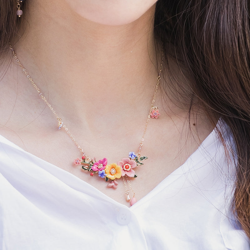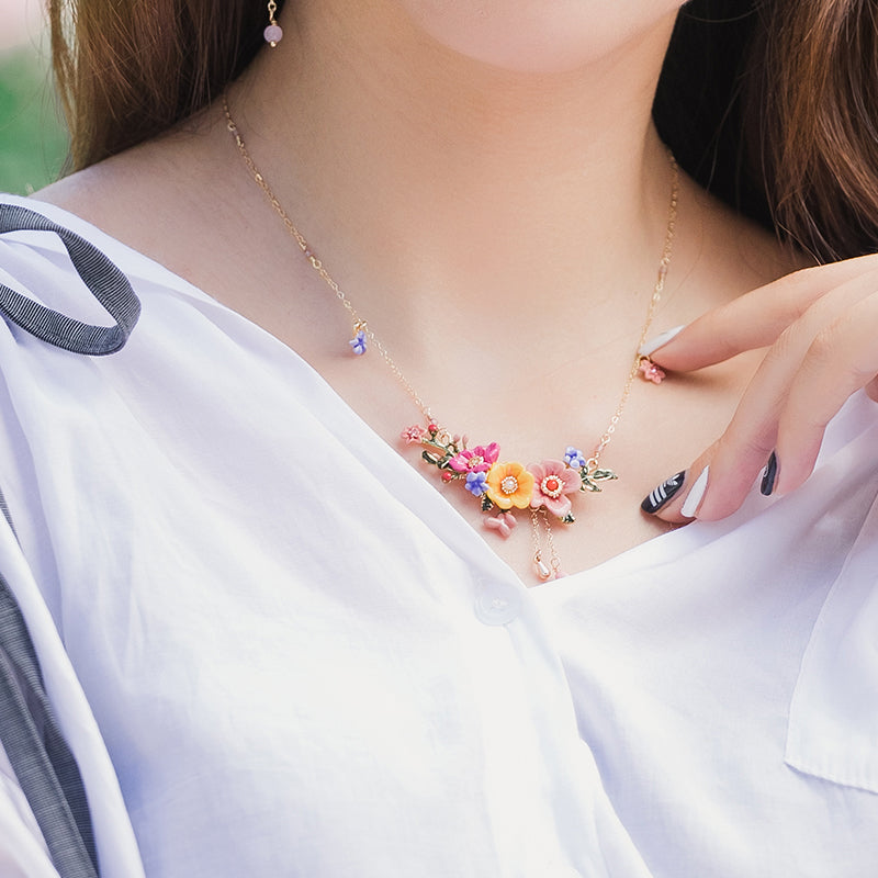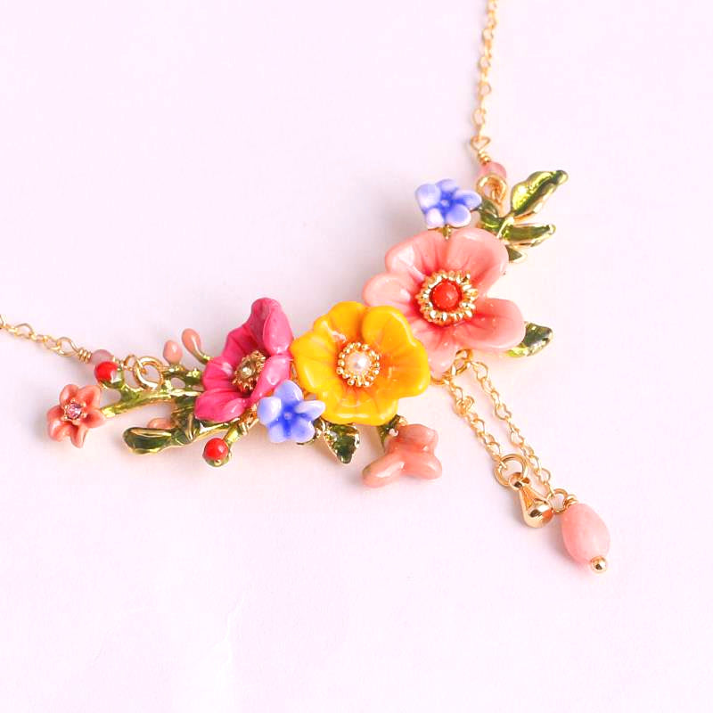 Enamel Colored Three-dimensional Flower Sweet Female Necklace