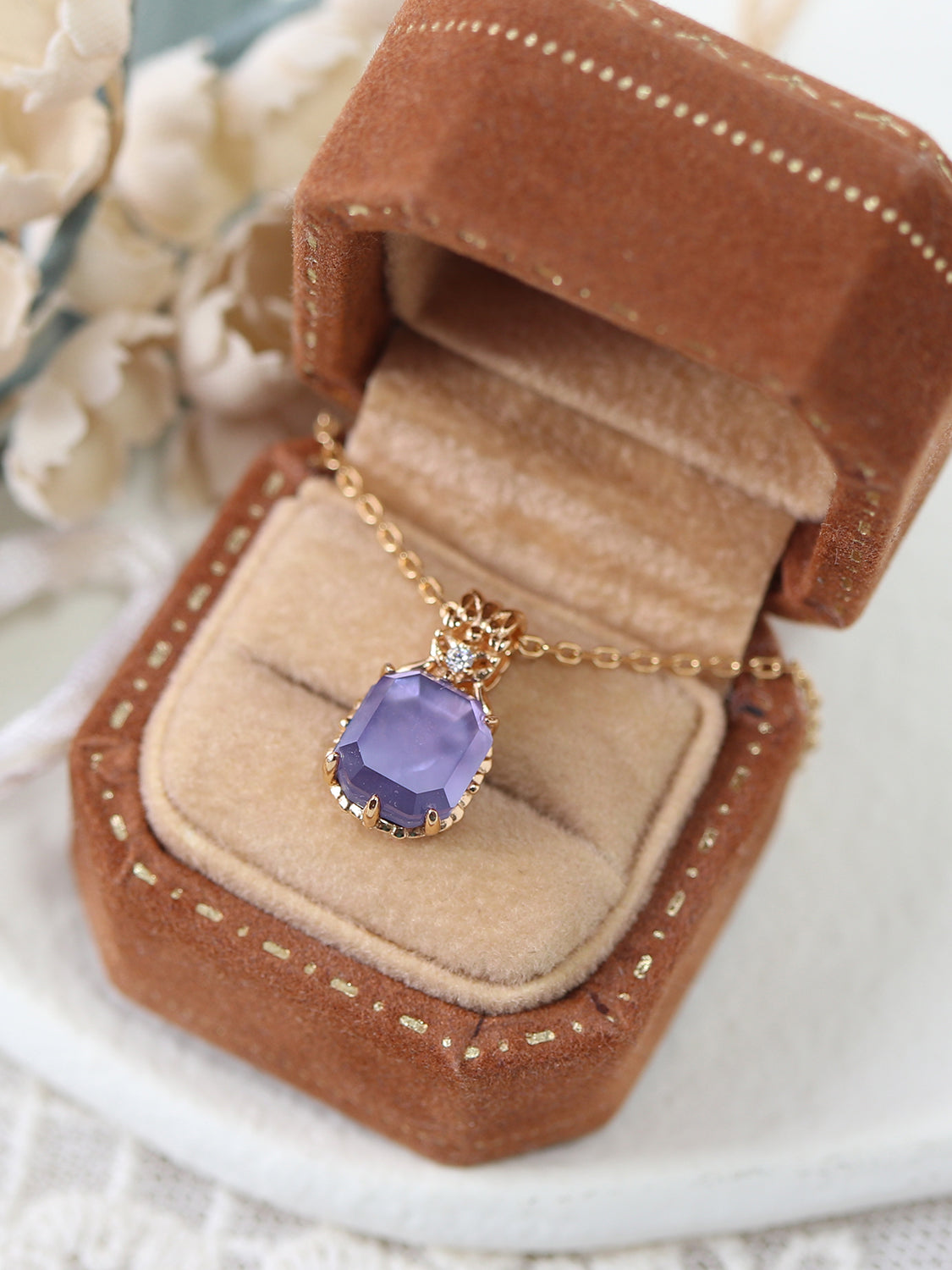 Natural Amethyst Lucky Olive Leaf Silver Necklace