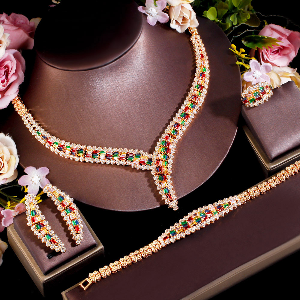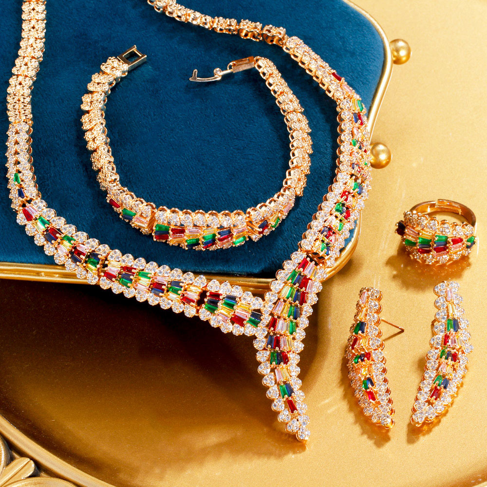 Noble Full Diamond Necklace Earrings Bracelet Ring Four Piece Set