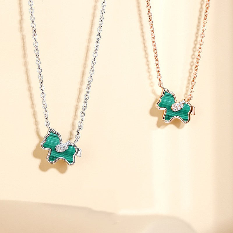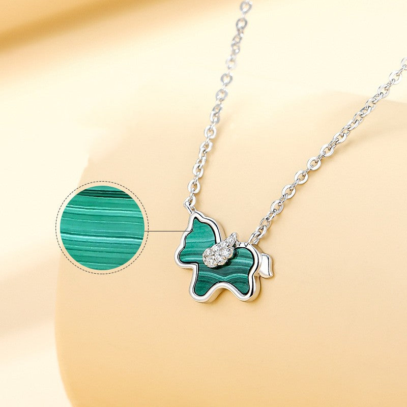 S925 Silver Ferris wheel Little Green Horse Necklace