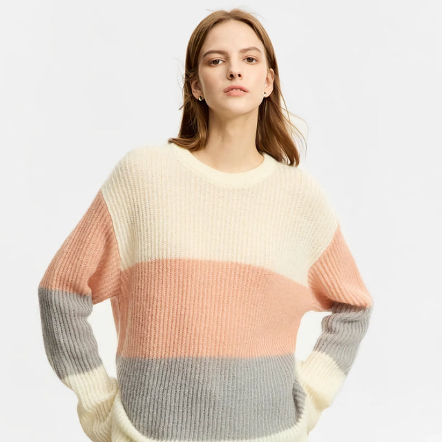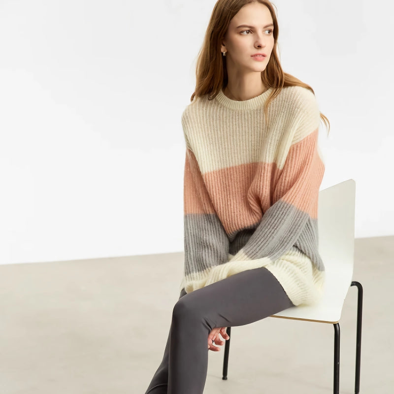 This sweater isn't just about looking good – it's about feeling good too. The unique material composition of 40% nylon, 30% wool, and 30% mohair ensures a luxurious feel against your skin. The high stretch fabric adapts to your body shape, providing a flattering silhouette without compromising on comfort. The contrast color patchwork design adds a touch of modern sophistication, making it a standout piece in your wardrobe.Perfect for Any Occasion