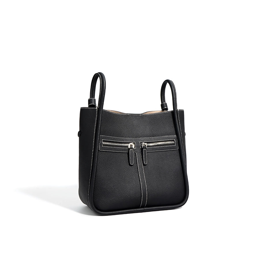 Step out in style with our Genuine Leather Bucket Bag, the perfect blend of sophistication and practicality. Designed for the modern woman who values both form and function, this versatile tote effortlessly transitions from a shoulder bag to a handheld accessory, making it your go-to choice for any occasion. Whether you're heading to the office, running errands, or enjoying a weekend getaway, this bag will be your faithful companion, offering both style and convenience.Timeless Design and Premium Materials