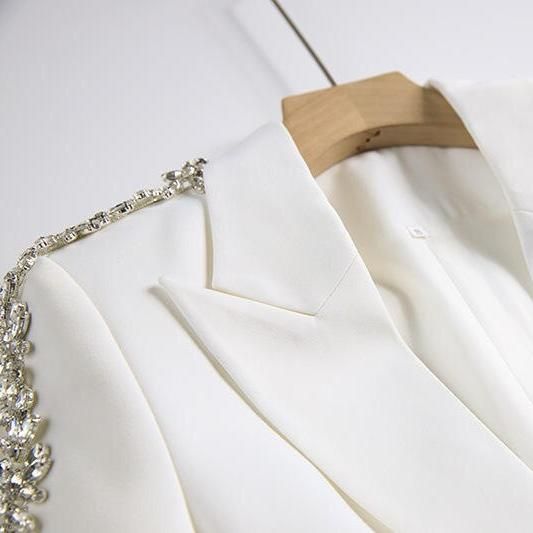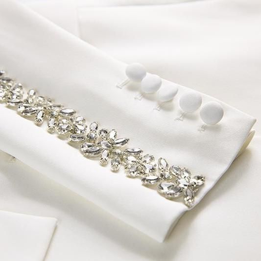 Step into a world of elegance with our newest 2024 runway-inspired women's suit set. Meticulously crafted for the modern, career-oriented woman, this set features a single diamond beaded blazer paired with chic flare pants. It's a fashion statement that transcends the ordinary, blending sophistication with a touch of glamour. Ideal for both office and high-street fashion, it's designed to elevate your style quotient effortlessly.Product Features