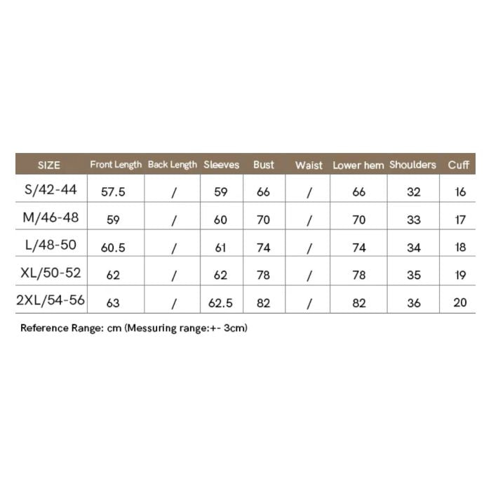 - Sleeve: With your arm outstretched, measure from the base of your neck to the end of the sleeve hem to determine where the sleeve length will fall on you.