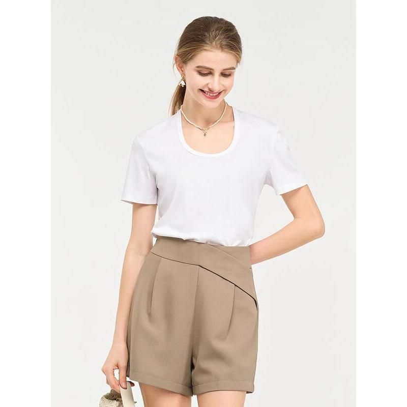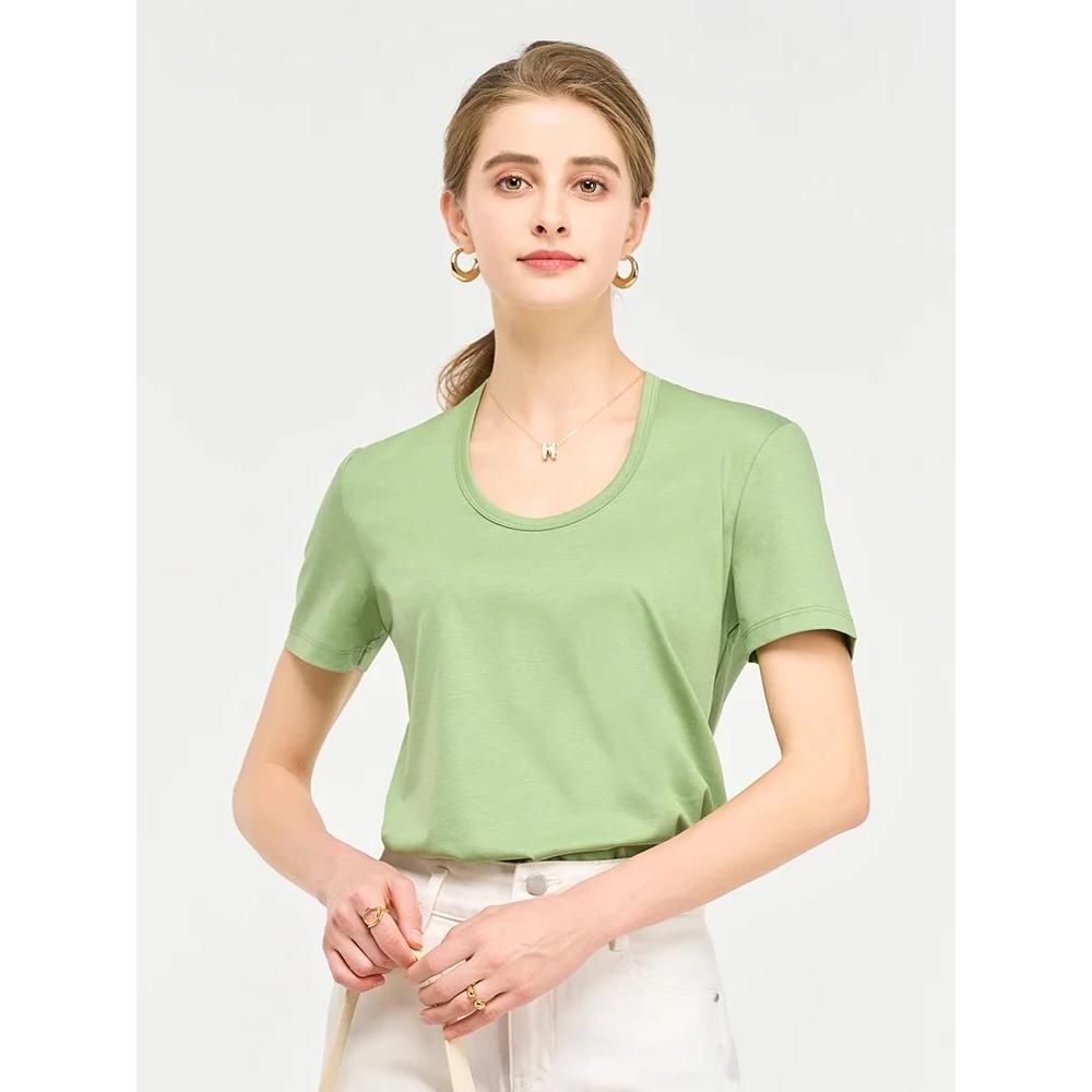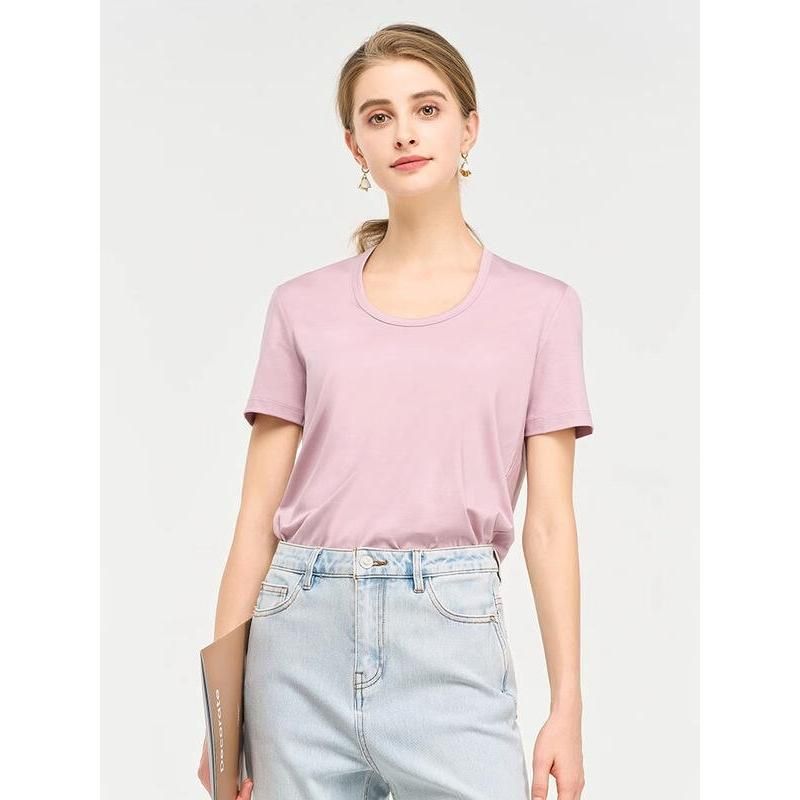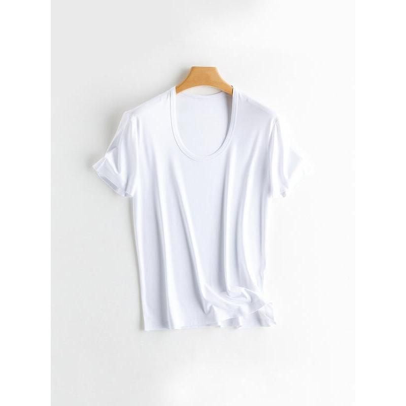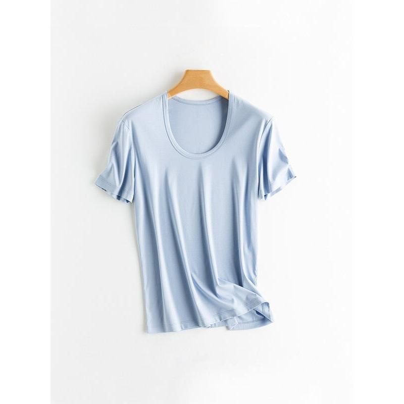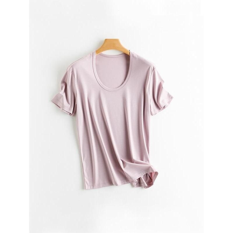 Made from a luxurious blend of 10% Mulberry Silk, 58% Cotton, and 32% Fiber, this tee offers unparalleled softness and comfort. The fabric is breathable, making it ideal for those hot summer days, while the slight stretch ensures a perfect fit for all body types. The square collar adds a trendy yet sophisticated touch, setting this tee apart from your regular summer wear.