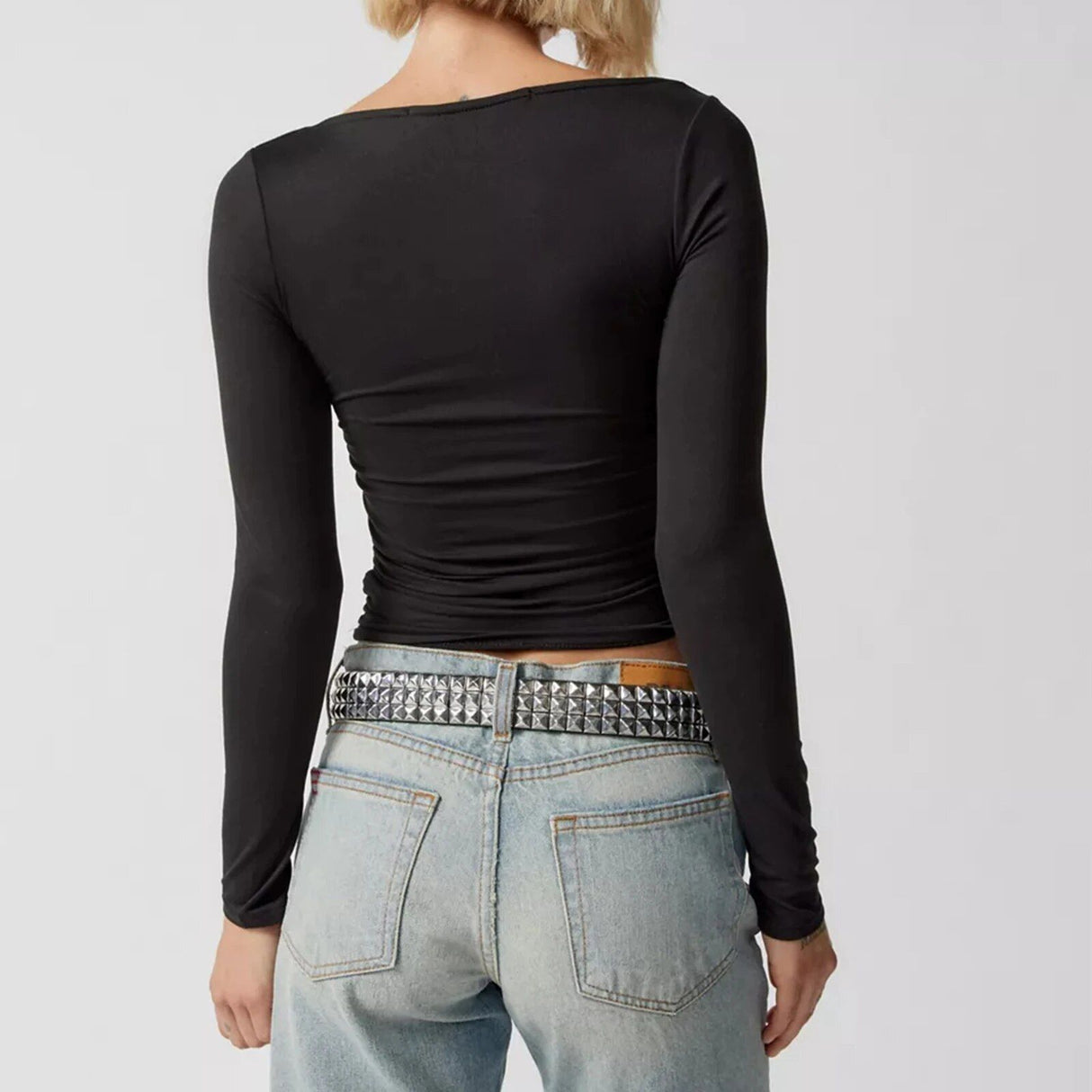 What sets this crop top apart is its unique blend of Y2K fashion with a modern twist. The square neck and slim fit design echo the popular styles of the early 2000s, while still feeling fresh and current. Its slight stretch ensures a comfortable fit, adapting to your body shape. This top isn't just a piece of clothing; it's a fashion statement that speaks to your individuality and taste.