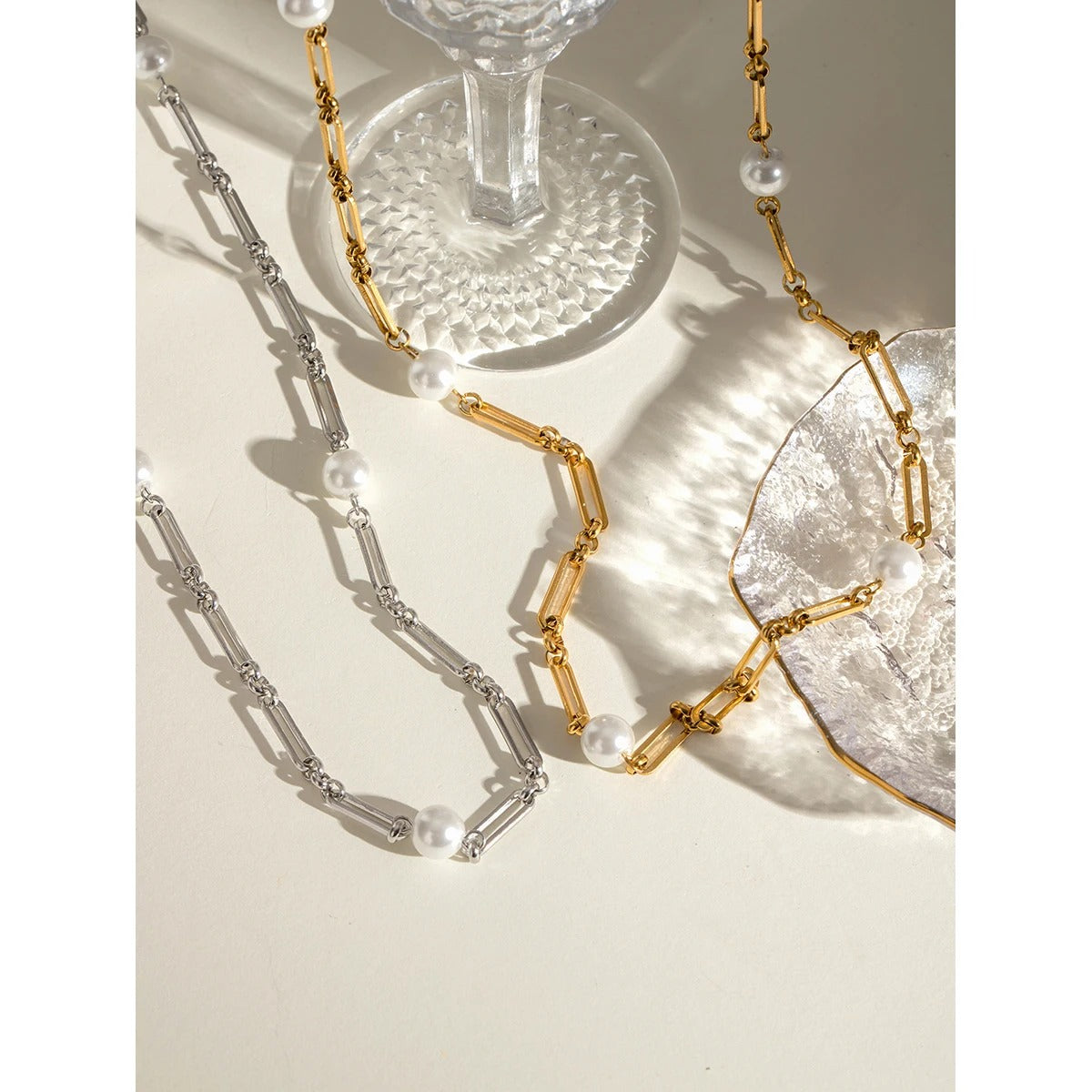 The standout feature of this necklace is the stunning imitation shell pearl, which adds a touch of refined elegance to the trendy paper clip chain. The 18K PVD gold plating ensures a lasting shine, and the necklace’s water-resistant and scratch-proof qualities make it a durable accessory for any lifestyle. Perfect as a gift or a personal treat, this necklace brings both beauty and practicality to your jewelry collection.