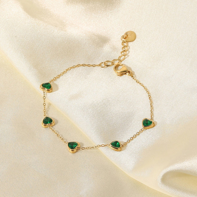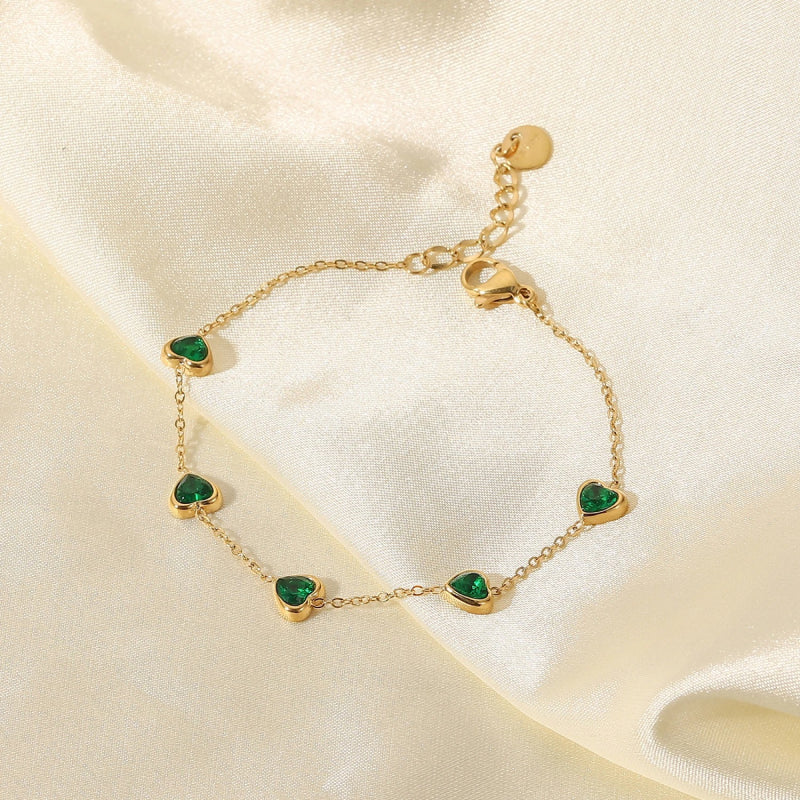 Dainty 14K Gold Plated Multi Green Heart Bracelet
