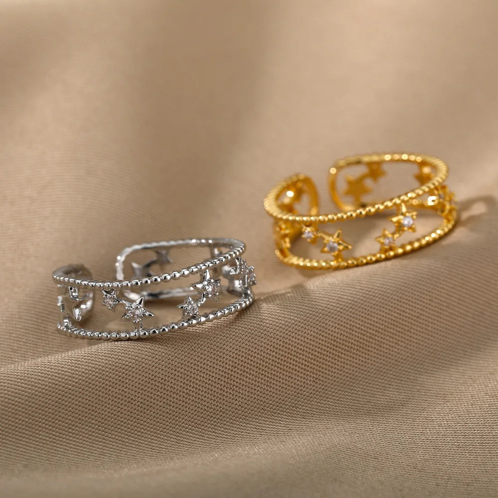 Elegant Star Cubic Stainless Steel Ring for Women - Trendy Aesthetic Jewelry