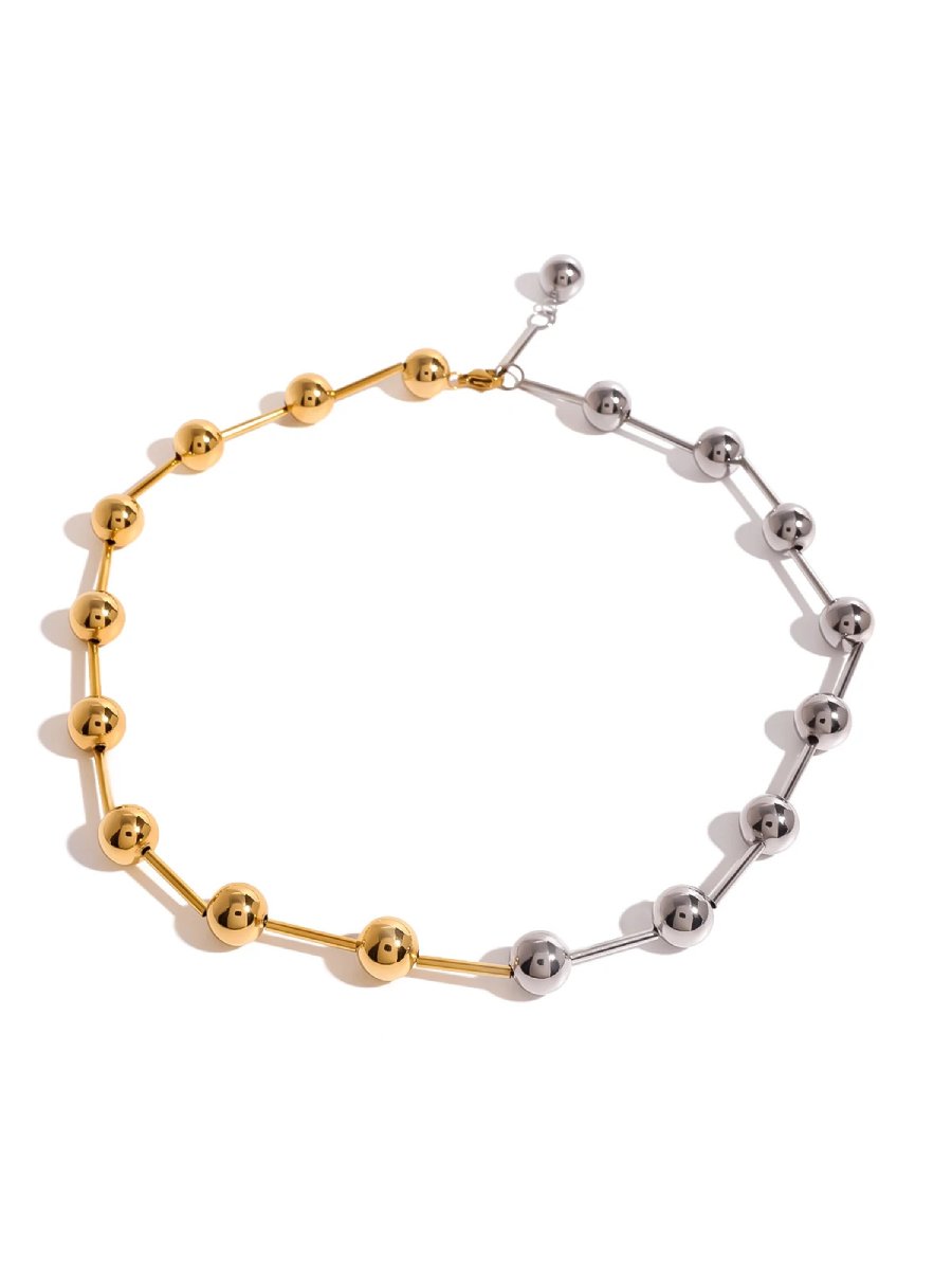 This necklace is more than just an accessory—it’s a symbol of effortless elegance. The unique beaded design combined with a metallic, trendy texture makes it a versatile piece for various occasions, from casual days to formal evenings. It’s the perfect way to express your style while enjoying the practicality of a durable, long-lasting necklace.Make a Statement Today