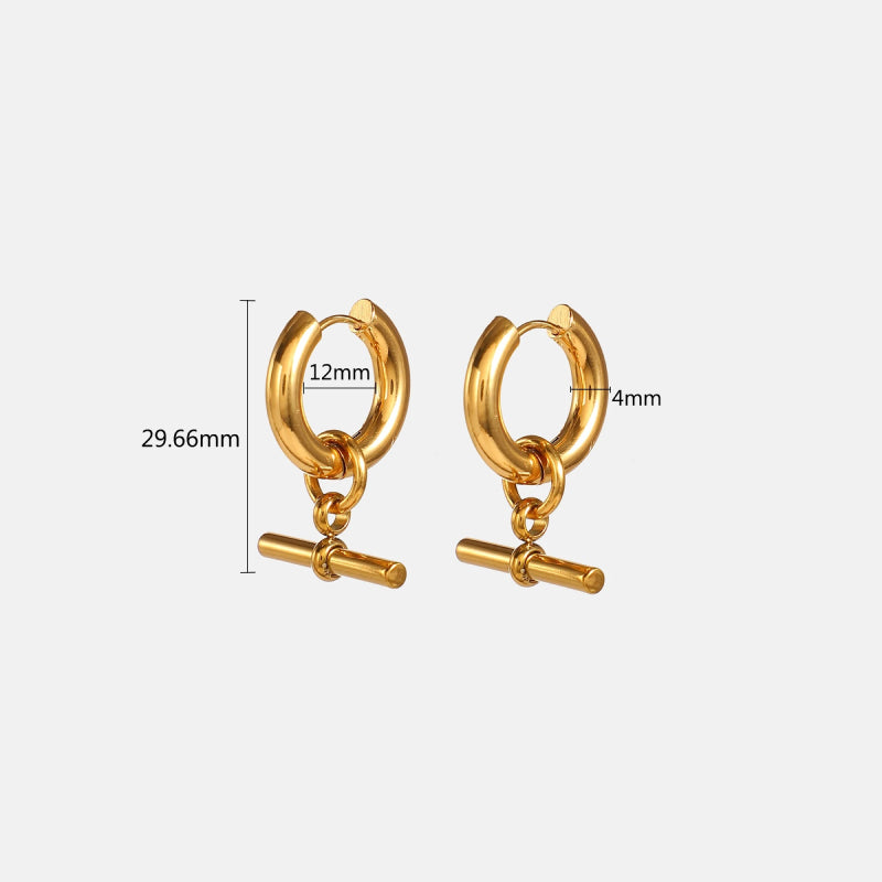 - Unique T-Bar Design: The stylish T-bar dangle adds a trendy twist to the classic hoop, making them stand out in any crowd.