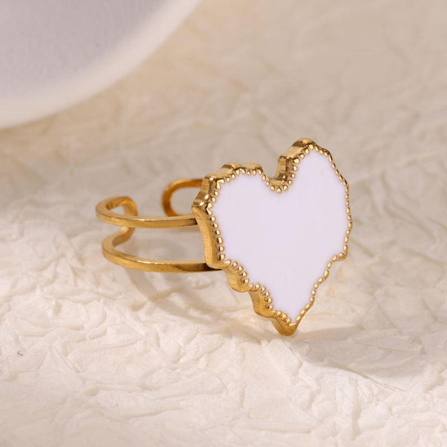 White Enamel Heart Stainless Steel Ring – Trendy, Elegant Jewelry