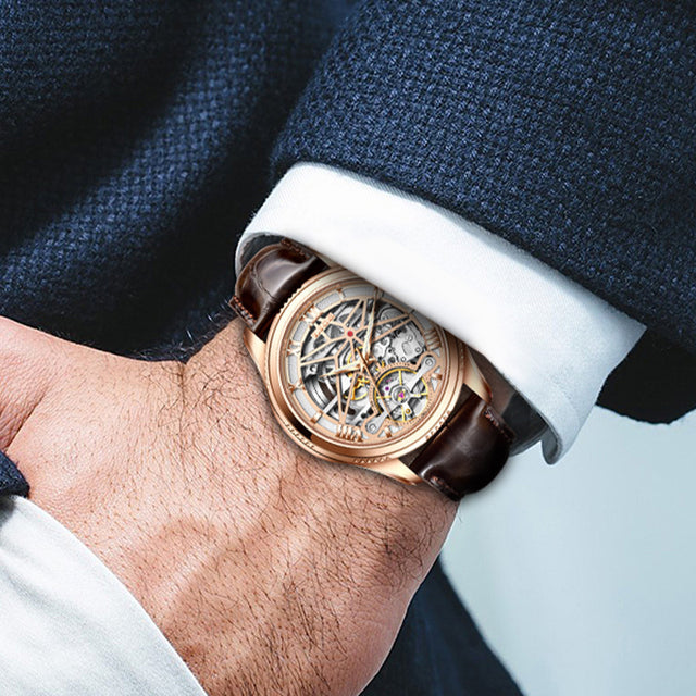 Mechanical Watch New Concept Skeleton Design Tourbillon Waterproof Watch - Leather rose is backordered and will ship as soon as it is back in stock.