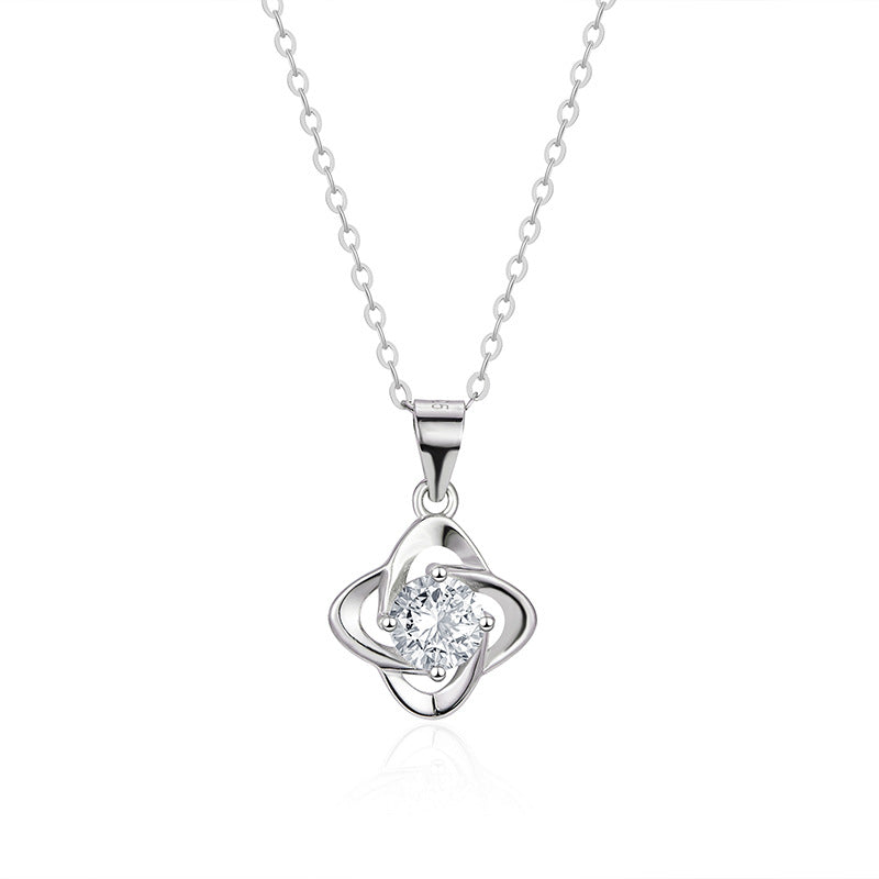 Women's Sterling Silver Moissanite Four Leaf Clover Pendant Necklace