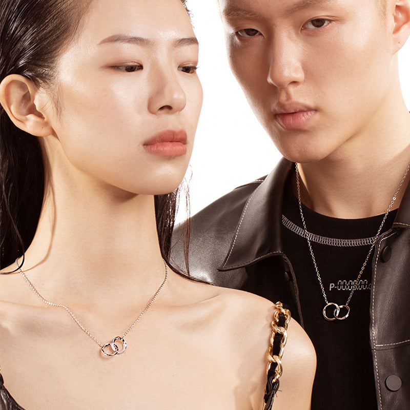 Women's Sterling Silver Niche Double Ring Couple Necklace