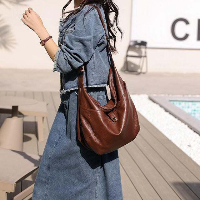 High-Quality Genuine Leather Women's Crossbody Hobo Bag