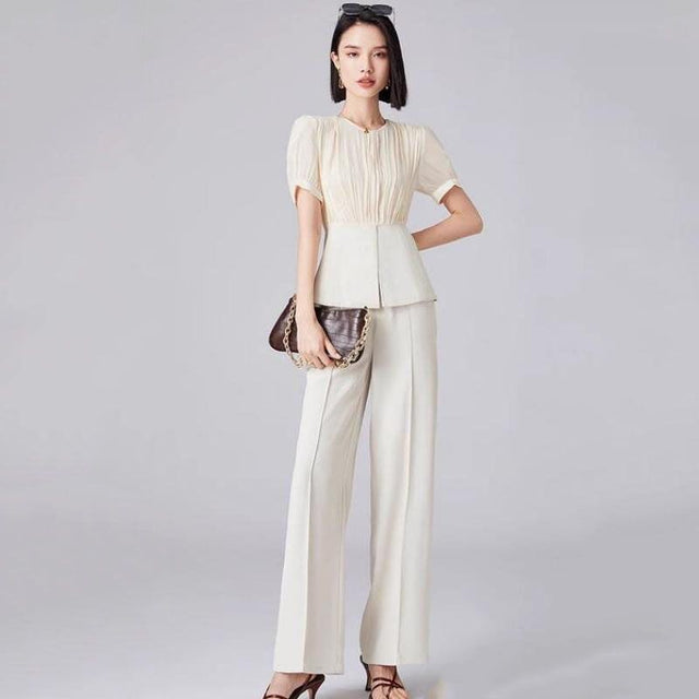 Elegant Long Sleeve Top & Wide Leg Pants Set
