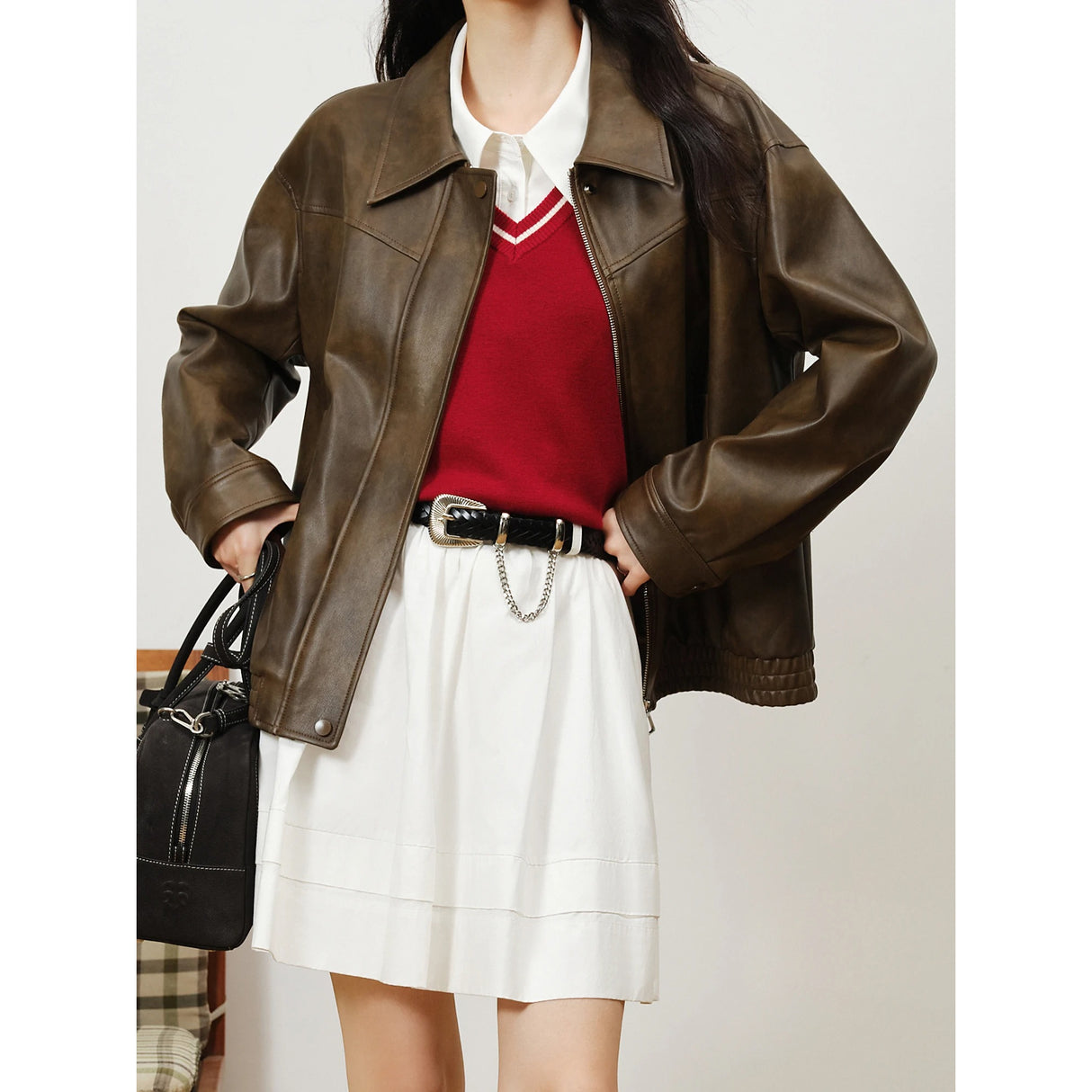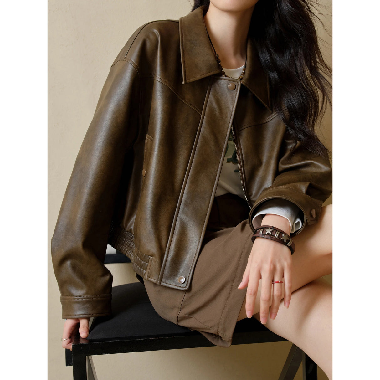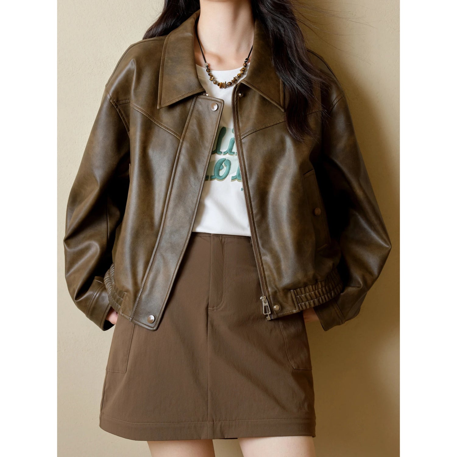 Cool and Stylish Retro Leather Jacket for Women - Autumn Casual Short Jacket
